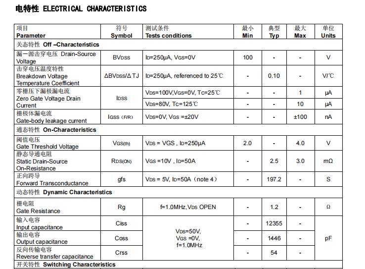 在其特性中具備低導(dǎo)通內(nèi)阻、低柵極電荷、100% EAS測試、100% DVDS熱阻測試、100% Rg測試、VTH細(xì)化分檔、SGT工藝、